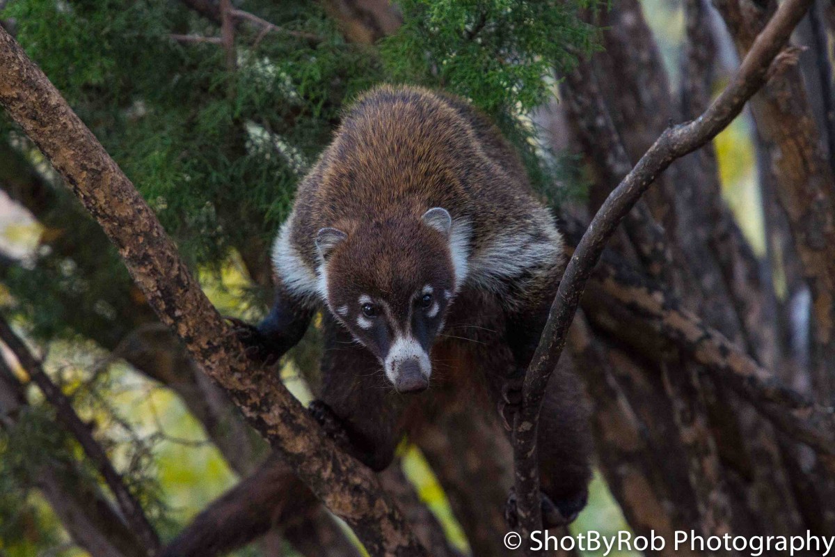 Located in S.E Arizona, only 60kms from the Mexican border, Cave Creek Ranch is touted as a major wildlife and birders paradise. I can personally attest to the accuracy of this. Upon my arrival late one afternoon, and not 2 minutes from exiting my car, a coatimundi ( a large relative of the racoon) jumped down from a tree near reception, and four white-tailed deer (including an antlered buck) came to graze not 10 mtrs away. A blue throated hummingbird was loudly “seet-ing” nearby and a pair of red cardinals jumped excitedly in a bush in front of me. To add to my excitement, later that evening, after a superb home cooked meal in our spacious and well appointed self contained unit, a pair of javelina’s and a lone skunk trotted by.