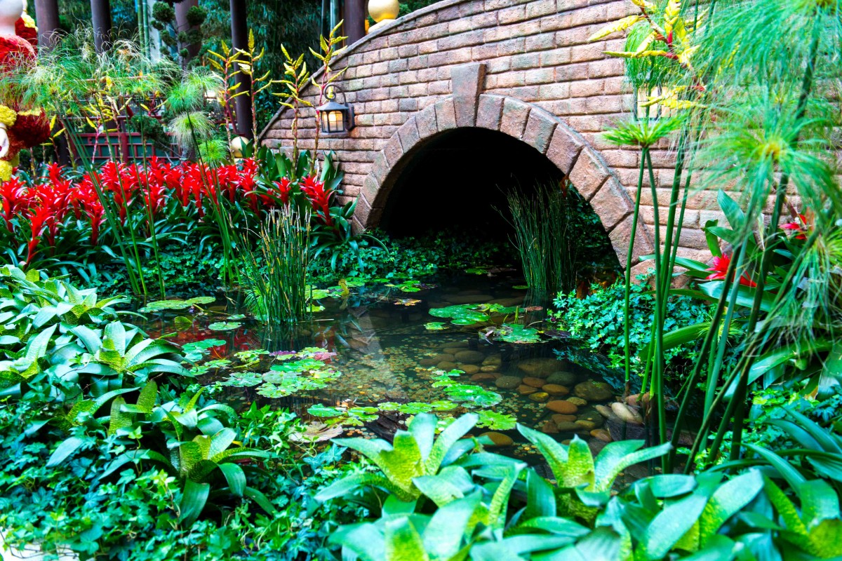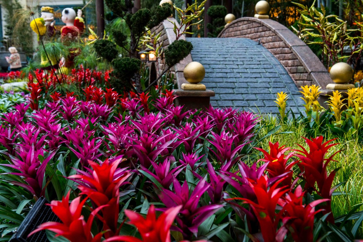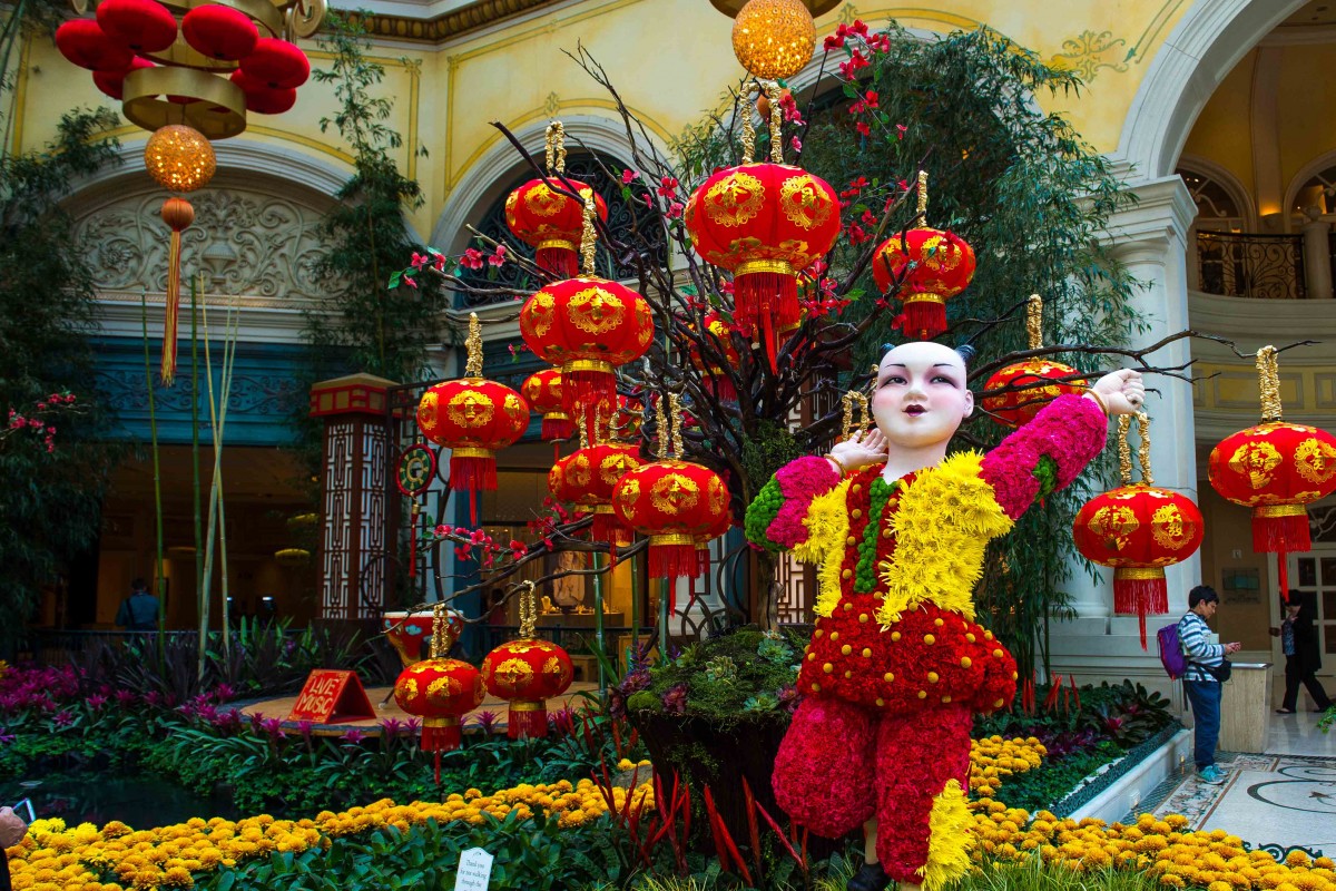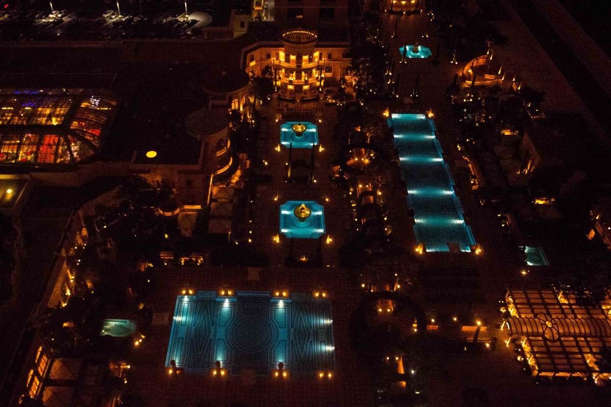 The Bellagio prides itself on its indoor atrium featuring themed floral tribute arrangements displays which are changed six times a year. With a full time staff of six horticulturalists, it’s a year round job tending to these floral works of art. Our stay timed to the Chinese New Year, and the displays were oriented towards this festival. Brightly coloured joyous mass plantings of bromeliads, bridges over flowing creeks, and a huge cascading waterfall. Serene by day, elegant by night.