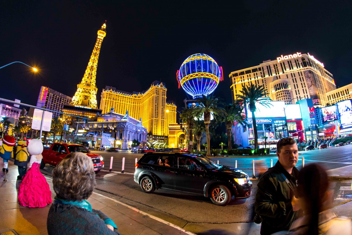 With 40 million visitors each year the tourist district is busy all the time. Just traversing the 2.5km trip from the airport to our hotel took 40 minutes. The main four blocks of the highly recognizable “Vegas Strip” on which the most well known hotels and casinos are located are prone to being quite crowded, day and night. It’s a constant visual kaleidoscope. Flashing lights from thousands of signs in a myriad of shapes spelling out words and symbols. Signs in the sky, on the street and fountains light up the world around you. The neons are so powerful that the signs are bright even in the daytime. Las Vegas, the city, uses approx. 1300 MegaWatts of power per day. This is twice the daily power usage of Afghanistan with a population of 30 million people. Las Vegas, the entity however, is powered by human kinetic energy. Its alive and seething and feeds voraciously on a constant diet of 24 hour bars, casinos and restaurants.