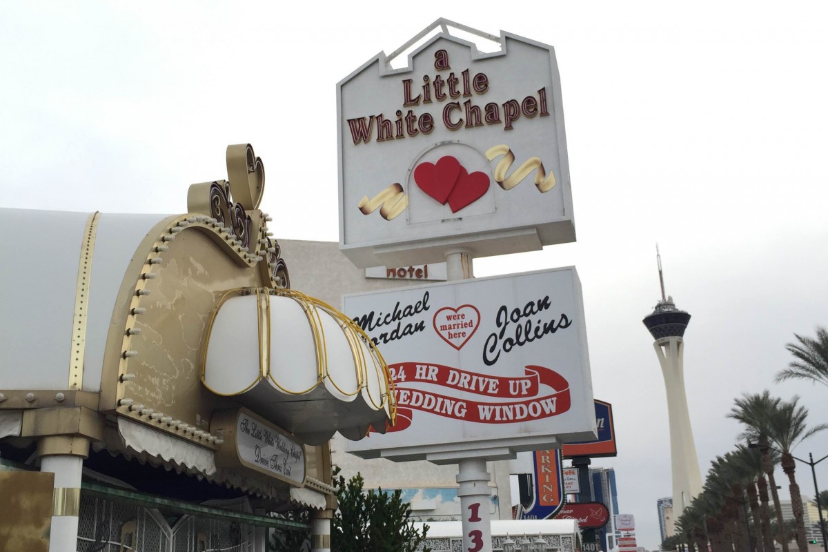 Up South Las Vegas Blvd stands the famous “Little White Chapel” known for its “quickie” wedding ceremonies. The sign says that Michael Jordan and Joan Collins were married here (not to each other). Its popular drive-thru Tunnel of Love has performed over 80,000 marriages since 1961.